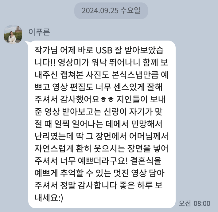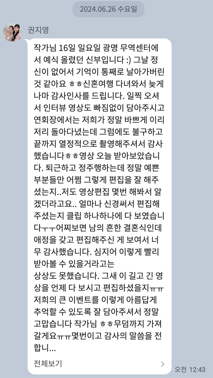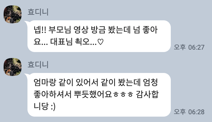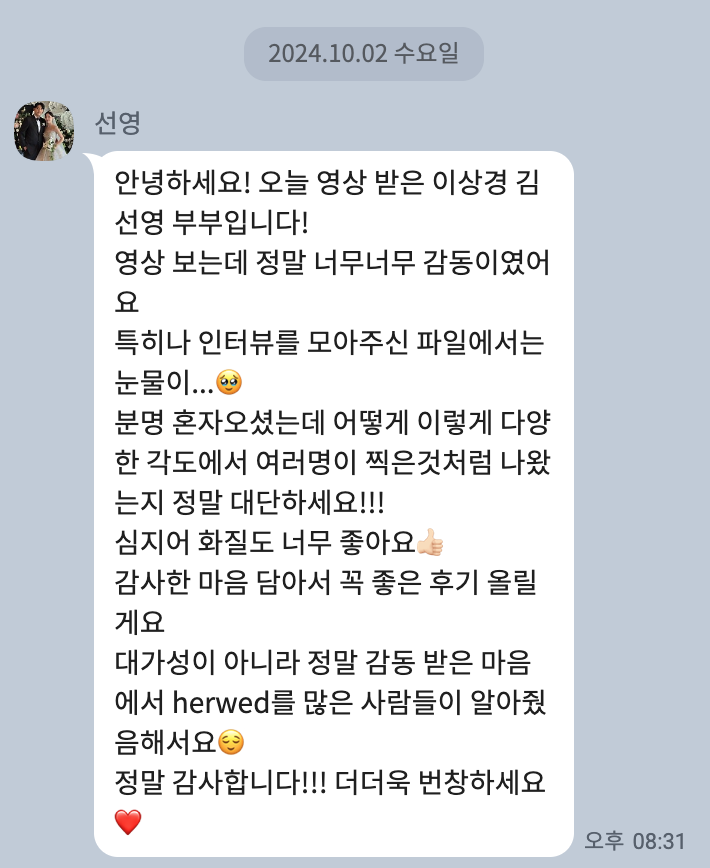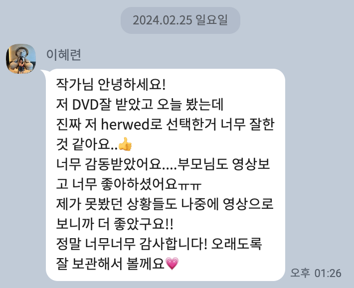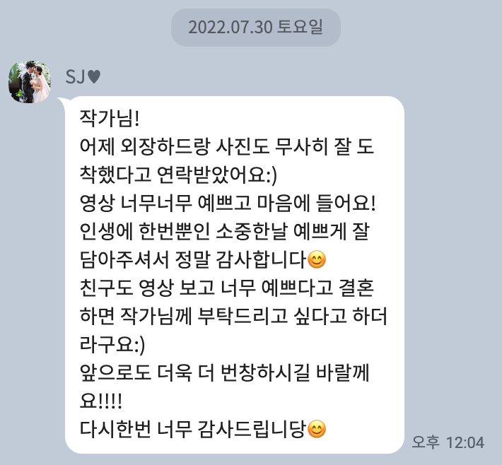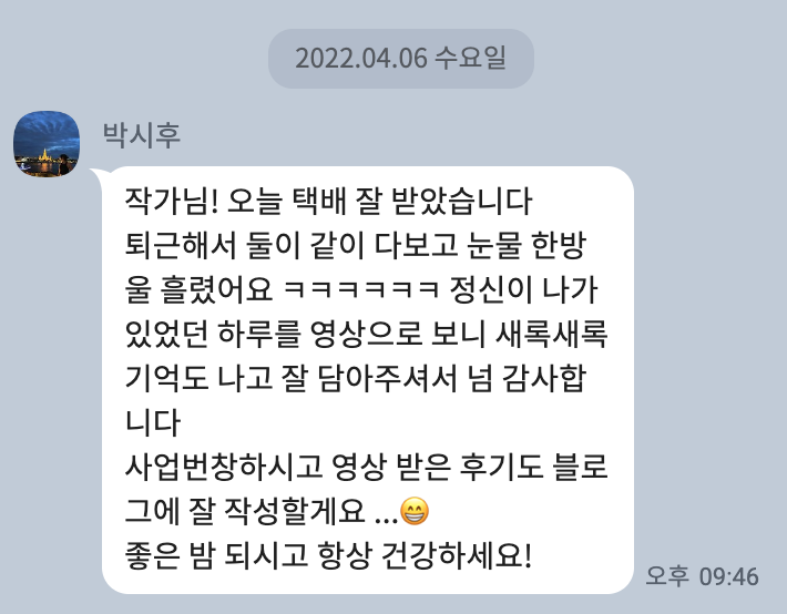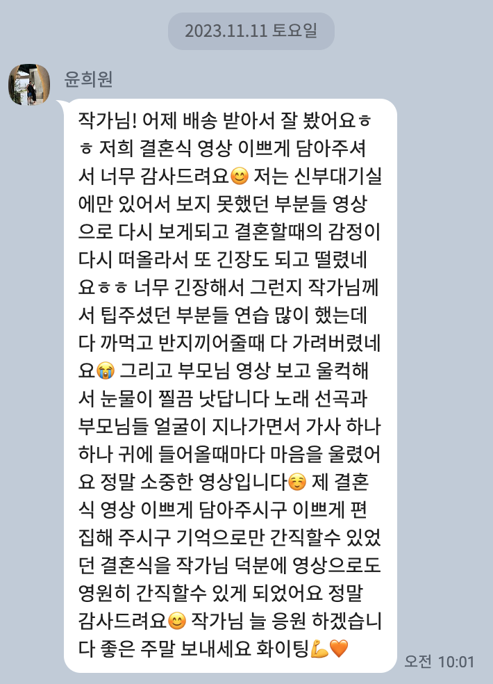 About. Review [따스한 마음들] 영상 수령 후 별도의 후기 작성이 아닌 카카오채널로 건네주신 따스한 마음들의 모음입니다 공유하기 게시글 관리 HERWED 저작자표시 (새창열림)